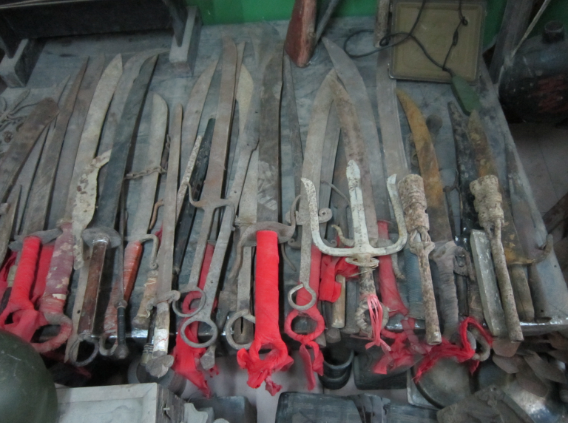 漢濱鐵制刀具制作技藝可分為鐵制生產(chǎn)工具、鐵制生活用具和鐵制兵器三類。自古以來,安康地區(qū)的鐵礦多是自采、自冶煉、自用。據(jù)1989年《安康縣志》記載,“新中國成立前有城鄉(xiāng)鐵匠洪爐手工業(yè)作坊。1956年建立農(nóng)機修造廠。現(xiàn)有安康縣機械廠、農(nóng)機廠、拖修廠、五金修造廠、鋼改廠、圓釘廠等6個企業(yè)。鄉(xiāng)鎮(zhèn)企業(yè)中有金屬制品企業(yè)28個,從業(yè)人員397人,年產(chǎn)值95萬元。街道工業(yè)中也有一些五金加工廠企業(yè)”。