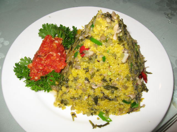 漢濱漿水菜又稱作“酸菜”。漿水菜的食材一年四季遍地都有,秋冬季主要以鮮蘿卜櫻子為主,春夏季則以刀刀菜、春不老、刺芽菜、莧菜等植菜為主,其他白菜、芹菜等亦可腌泡。