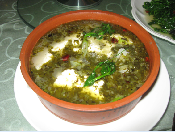 酸菜除了菜梗、菜葉講究外,更重要的是漿水汁的質(zhì)地要清亮。酸、香、脆的漿水菜配伍性極強(qiáng),吃法多樣。漿水面、漿水拌湯十分可口,漿水?dāng)噲F(tuán)、酸菜炒米飯、酸菜炒菜、酸菜水餃、酸菜包子等味道獨(dú)特,清香可口,受到安康人們的喜愛。“三天不吃酸,走路打竄竄”體現(xiàn)了漢濱區(qū)城鄉(xiāng)群眾對(duì)漿水菜的鐘愛。胃口不好時(shí)吃碗酸菜面可增加食欲,夏日炎熱時(shí)喝點(diǎn)酸菜湯清熱敗火,冬天吃頓酸菜糊涂面渾身舒暢……