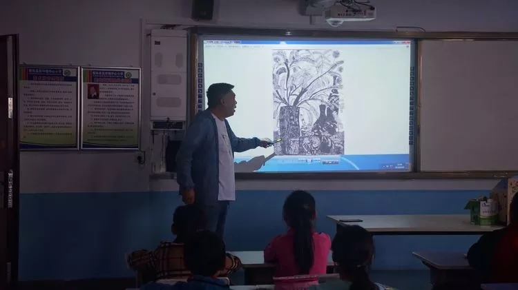安康市群眾藝術(shù)館的劉曉東老師正在為學(xué)校的留守兒童上課,他為孩子們介紹了安康兒童版畫的歷史和發(fā)展、版畫教育的意義,以及版畫制作的方法和過程,孩子們聽得特別認(rèn)真。