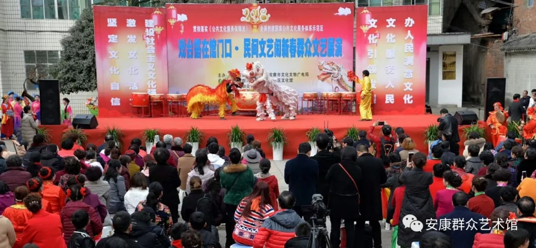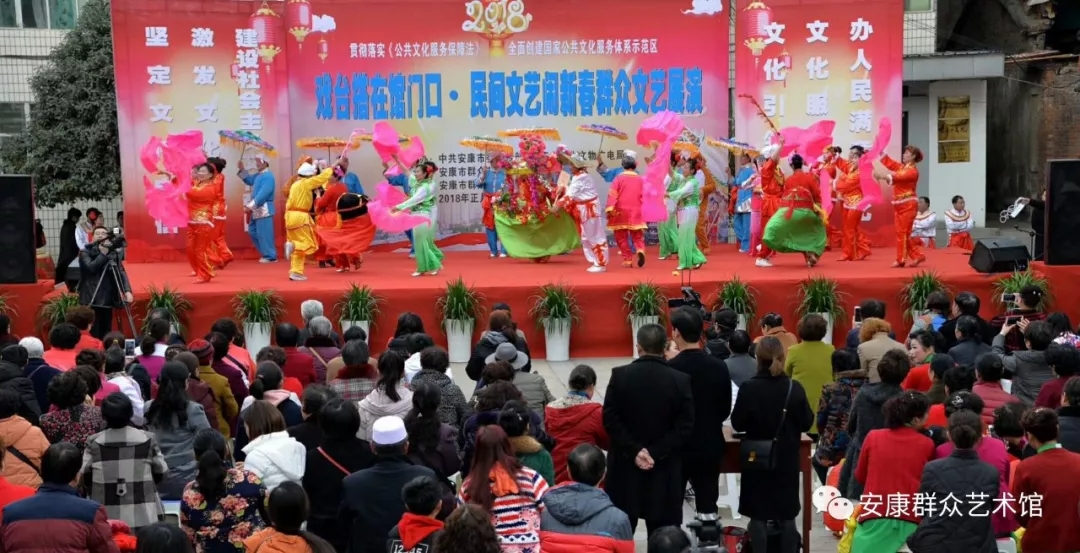 “戲臺(tái)搭在館門(mén)口?民間文藝鬧新春”春節(jié)系列群眾文化活動(dòng)自2009年舉辦以來(lái),采取的定期舉辦方式(每年正月初八至正月十六),從而呈現(xiàn)出濃郁的節(jié)日氣氛!傳統(tǒng)民間文藝節(jié)目給百姓帶來(lái)快樂(lè)的同時(shí),也給春節(jié)增添了濃濃的“年味”。通過(guò)國(guó)家級(jí)非物質(zhì)文化遺產(chǎn)項(xiàng)目漢調(diào)二黃、紫陽(yáng)民歌,省級(jí)非物質(zhì)文化遺產(chǎn)項(xiàng)目小場(chǎng)子和安康花鼓子,表達(dá)了社區(qū)群眾謀發(fā)展、共創(chuàng)業(yè)、建設(shè)美麗新安康的豪情壯志,同時(shí)也在春節(jié)期間為廣大人民群眾獻(xiàn)上了一道豐富的“視覺(jué)盛宴”。