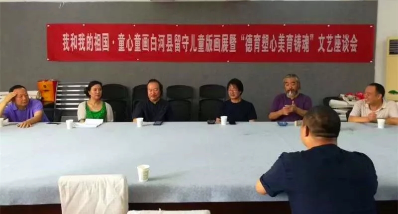 開幕式后安康市群藝館書畫部主任馬孟剛和白河縣西營小學(xué)陳德安校長共同主持了“德育塑心,美育鑄魂”文藝座談會,與會嘉賓對作品和展示效果給予了高度評價,對創(chuàng)作思路,兒童版畫的特點,和教學(xué)方法進(jìn)行了指導(dǎo)并作了方向性指引。