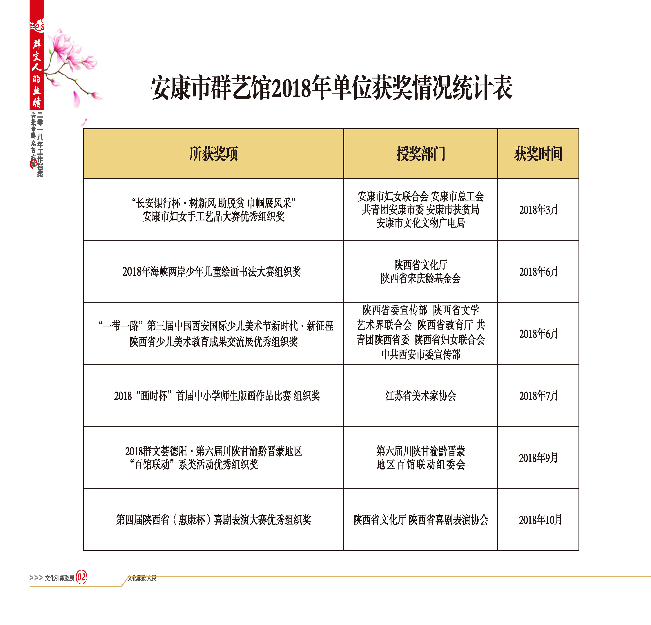 安康市群藝館2018年單位獲獎情況統(tǒng)計表