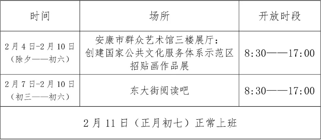 安康市群眾藝術館春節(jié)期間開放公告