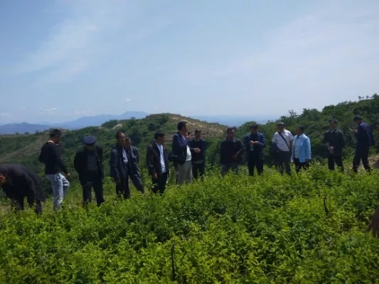 書堰村轄14個(gè)村民小組,有耕地6800畝,由于地理位置偏遠(yuǎn)、生態(tài)環(huán)境脆弱、土地產(chǎn)出能力低下,受自然條件和地里因素所限,多年來全村以茶葉、畜牧業(yè)及勞務(wù)輸出為主,是典型的貧困山村。安康市群眾藝術(shù)館駐村第一書記何萬鑫進(jìn)村后,通過召開座談會(huì)、入戶查訪、田間交流談心等方式深入調(diào)研,發(fā)現(xiàn)村民對(duì)調(diào)整現(xiàn)有產(chǎn)業(yè)結(jié)構(gòu),種植新型經(jīng)濟(jì)作物,增收增效愿望迫切,遂邀請安康市日晟生態(tài)農(nóng)業(yè)發(fā)展有限公司負(fù)責(zé)人對(duì)金銀花種植進(jìn)行培訓(xùn),培訓(xùn)會(huì)后經(jīng)村兩委會(huì)商議,村種植大戶表決,決定派代表對(duì)日晟公司種植基地進(jìn)行實(shí)地考察。