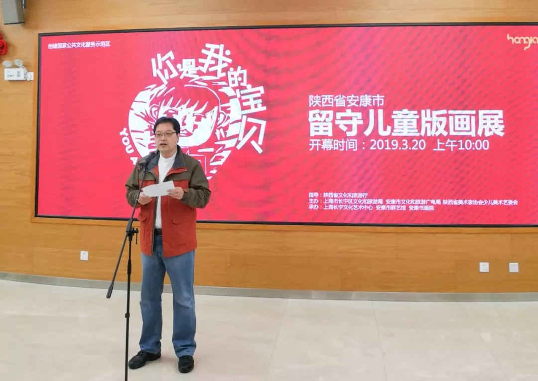 3月20日上午10時,由陜西省文化和旅游廳指導(dǎo),上海市長寧區(qū)文化和旅游局、安康市文化和旅游廣電局、陜西省美術(shù)家協(xié)會少兒美術(shù)藝委會主辦,上海長寧文化藝術(shù)中心、安康市群藝館、安康書畫院承辦的“你是我的寶貝”安康市留守兒童版畫展在上海市長寧文化藝術(shù)中心隆重開展。
